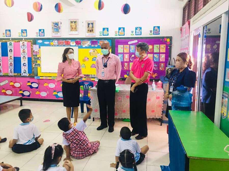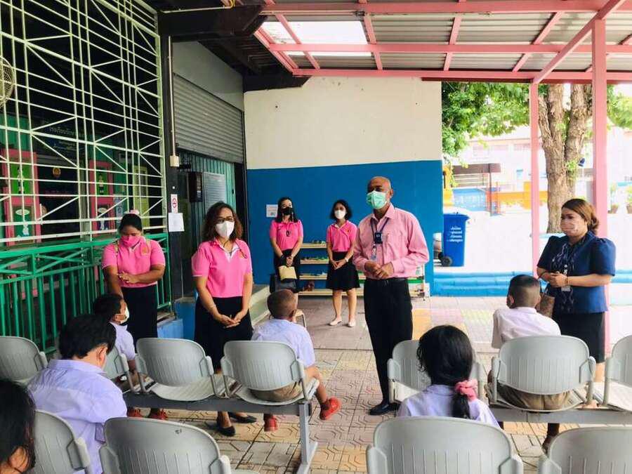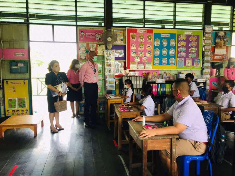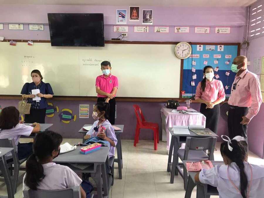 (17 พฤษภาคม 2565) ดร.กนิษฐา ทองเลิศ ผู้อำนวยการสำนักงานเขตพื้นที่การศึกษาประถมศึกษาปทุมธานี เขต 1 มอบหมายให้ นายประพฤทธิ์ บุญอำไพ รองผู้อำนวยการสำนักงานเขตพื้นที่การศึกษาประถมศึกษาปทุมธานี เขต 1 ลงพื้นที่เยี่ยมให้กำลังใจผู้บริหารสถานศึกษา คณะครู และนักเรียน ในการเปิดภาคเรียน ปีการศึกษา 2565 เป็นวันแรกในรูปแบบออนไซต์ (On-Stie) 100% พร้อมกับให้สถานศึกษายึดถือปฏิบัติบนหลักการพื้นฐานคือ 3T 1V ?ตัดความเสี่ยง เพิ่มภูมิคุ้มกัน? ซึ่งประกอบด้วย T : Thai Stop Covid Plus (TSC+) สถานศึกษาต้องประเมินตนเองเตรียมพร้อมก่อนเปิดเรียน T : Thai Save Thai (TST) นักเรียน ครู และบุคลากรทางการศึกษามีการประเมินความเสี่ยงตนเองเป็นประจำ T : Test ตรวจคัดกรอง เฝ้าระวังอย่างเหมาะสม เช่น ตรวจ ATK เมื่อมีความเสี่ยงหรือมีอาการ และ V : Vaccine ครู บุคลากร ผู้ปกครอง และนักเรียน ได้รับวัคซีนโควิด-19 ตามเกณฑ์พร้อมเน้นย้ำการปฏิบัติตามข้อกำหนด 6 มาตรการหลัก (DMHT-RC) 6 มาตรการเสริม (SSET-CQ) และแนวทาง 7 มาตรการเข้ม อย่างเคร่งครัด อาทิ เว้นระยะห่าง สวมหน้ากาก 100 % ล้างมือ ตรวจเชื้อด้วย ATK เมื่อมีอาการหรือเสี่ยง รวมถึงการดำเนินการตามแผนเผชิญเหตุ เมื่อพบผู้ติดเชื้อหรือผู้สัมผัสเสี่ยงสูง โดยเน้นย้ำไม่มีการปิดชั้นเรียนหรือโรงเรียน เป้าประสงค์เพื่อให้นักเรียนได้รับการเรียนรู้อย่างเต็มที่ที่โรงเรียน ณ โรงเรียนวัดมะขาม โรงเรียนวัดเทียนถวาย โรงเรียนวัดบางกุฎีทอง และโรงเรียนชุมชนวัดบางกะดี อำเภอเมืองปทุมธานี จังหวัดปทุมธานี S:0