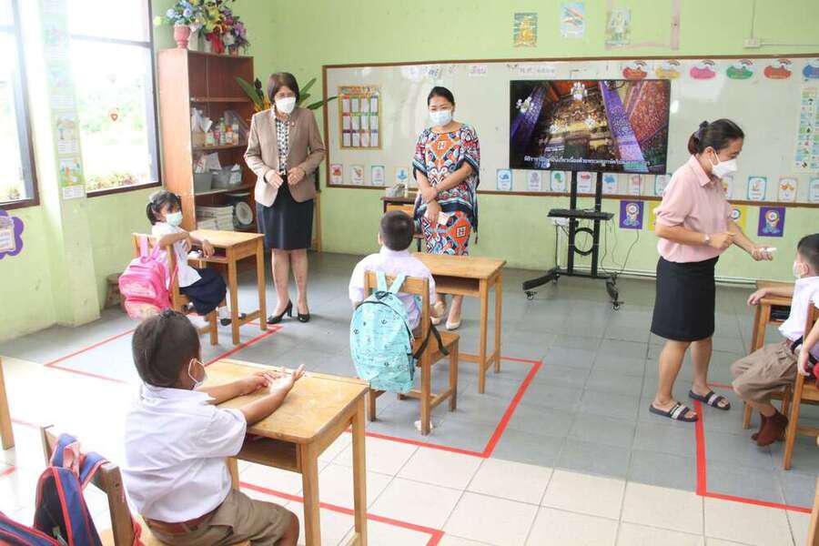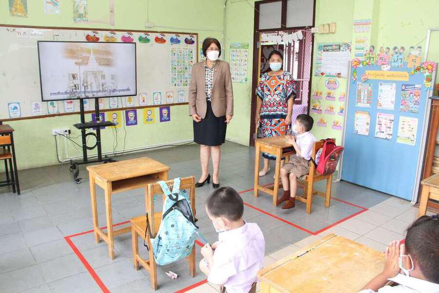 ดร.กนิษฐา ทองเลิศ ผู้อำนวยการสำนักงานเขตพื้นที่การศึกษาประถมศึกษาปทุมธานี เขต 1 ลงพื้นที่เยี่ยมให้กำลังใจผู้บริหารสถานศึกษา คณะครู และนักเรียน ในการเปิดภาคเรียน ปีการศึกษา 2565